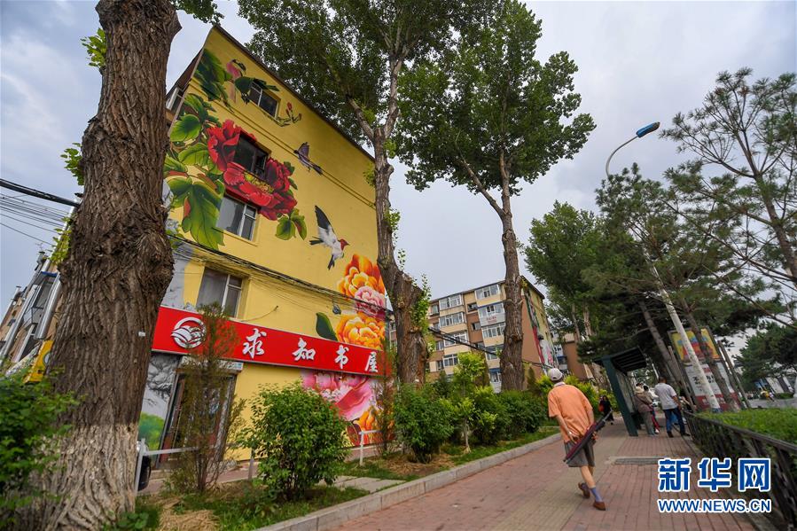 7月13日,市民从长春市南湖中街一幢画有楼体彩绘的居民楼前走过。 近日,吉林省长春市南湖中街两侧,三十余幅楼体彩绘亮相,吸引过往市民驻足观看。据了解,这些楼体彩绘是长春市文化街区打造工程的一部分,为附近居民的生活环境增添了一道靓丽风景线。 新华社记者 张楠 摄
