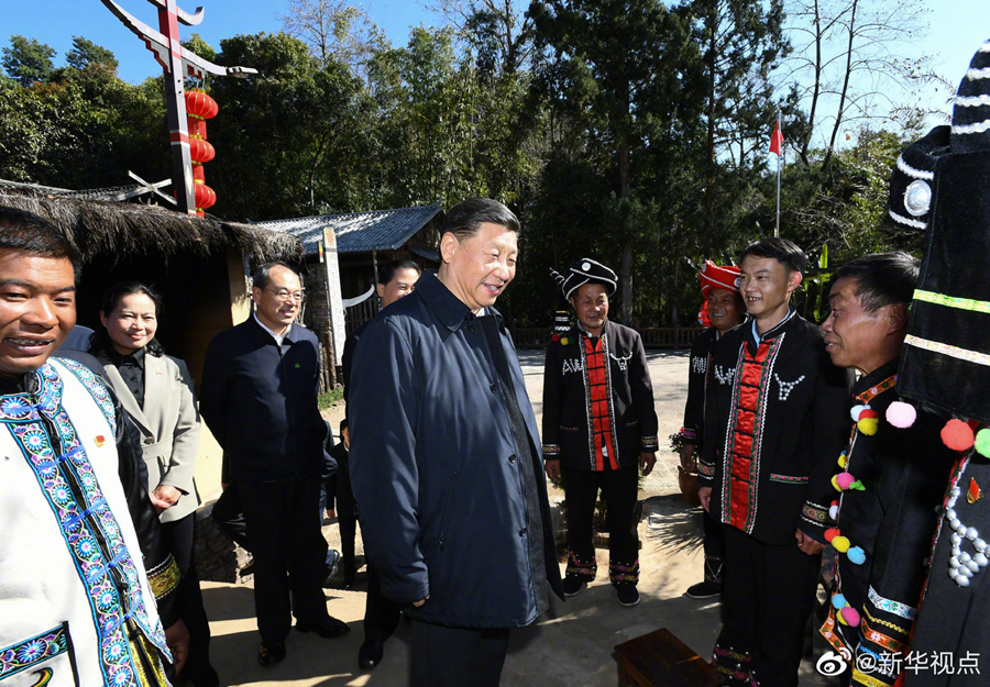 19日下午,正在云南考察的习近平总书记来到腾冲市清水乡三家村中寨司莫拉佤族村,同村民们围坐在一起共话佤寨人民幸福生活。司莫拉,佤语意为“幸福的地方”。习近平说,在大家努力下,你们这里已经实现脱贫并正向新的发展目标努力迈进,可喜可贺。全面建成小康社会之后要全面推进乡村振兴,进一步解决城乡发展不平衡等问题,发展乡村产业,振兴乡村经济,不断增加收入、改善民生,让幸福的佤族村更加幸福!(文字记者:张晓松、朱基钗 摄影记者:鞠鹏、谢环驰、燕雁)