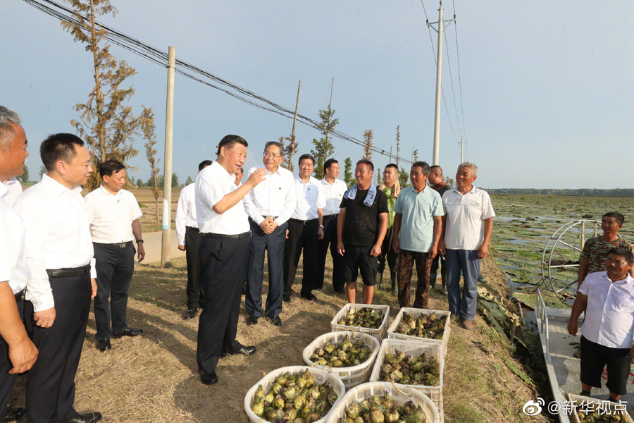 “这一直是我牵挂的事。”18日下午,正在安徽考察调研的习近平总书记来到阜阳市阜南县蒙洼蓄洪区利民村西田坡庄台,顶着炎炎烈日,走进田间地头,深入庄台农户,看望慰问受灾群众。乡亲们告诉总书记:“蓄洪期间,大家住在庄台,电没断、水照供、生活用品有人送。现在水退了,都在抢种补种,水退到哪里,就补种到哪里。请总书记放心!”习近平高兴地说:“我一直牵挂灾区的群众,看到乡亲们生产生活都有着落、有希望,我的心就踏实。”(文字记者:张晓松 摄影记者:鞠鹏 王晔)
