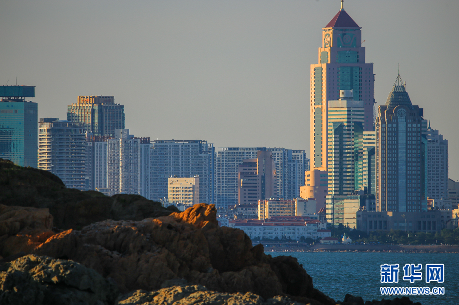 站在甘水湾畔远眺青岛,主城区的红瓦绿树、高楼大厦清晰在目。新华网发(王红涛 摄)