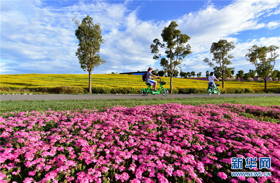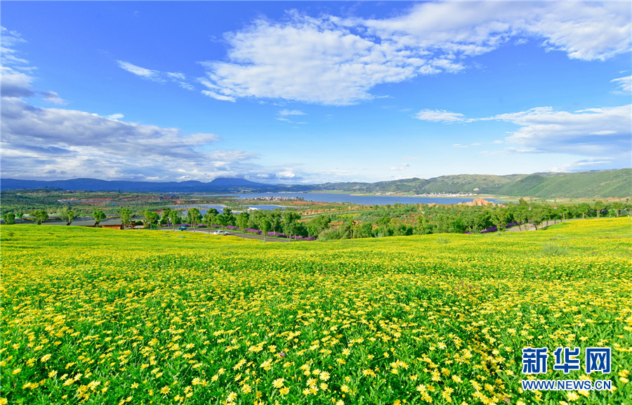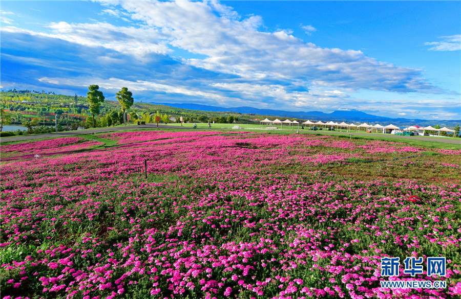 近日,云南省弥勒市太平湖森林公园千亩鲜花竞相绽放,为国庆节和中秋节“双节”游客旅游增添新亮点。新华网发(普佳勇摄于9月28日)