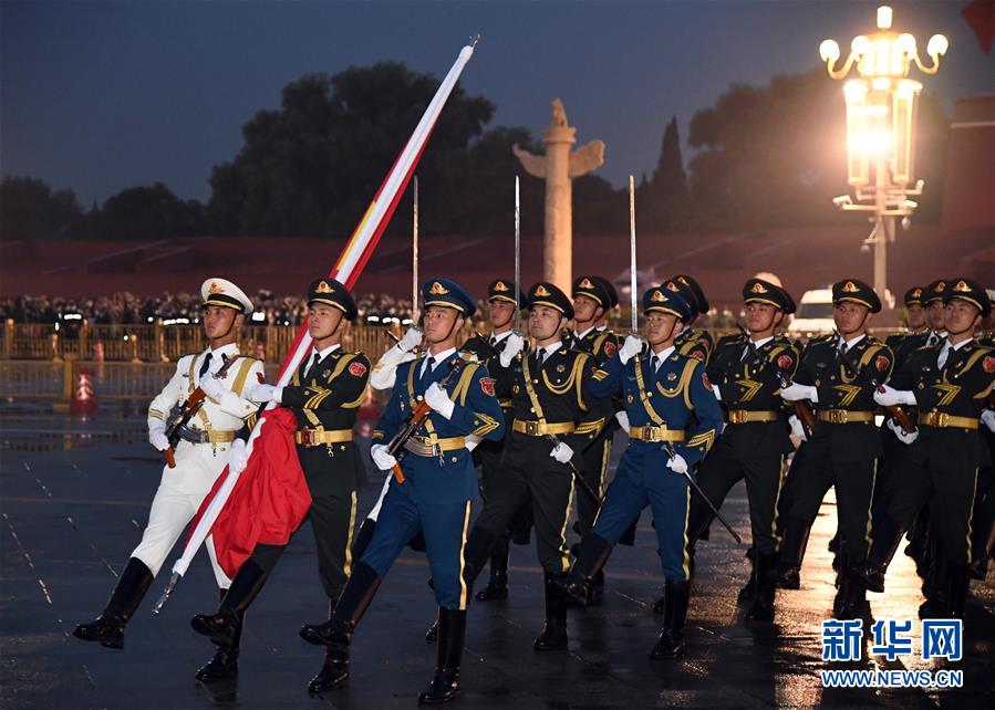 10月1日清晨,隆重的升国旗仪式在北京天安门广场举行,庆祝中华人民共和国成立71周年。 新华社记者 任超 摄