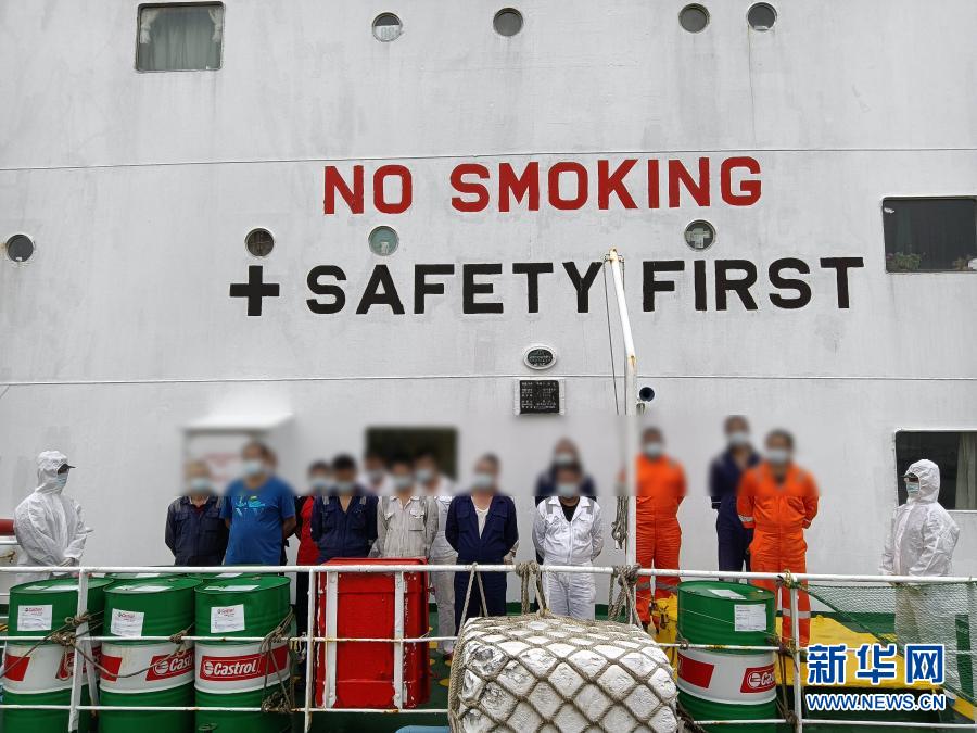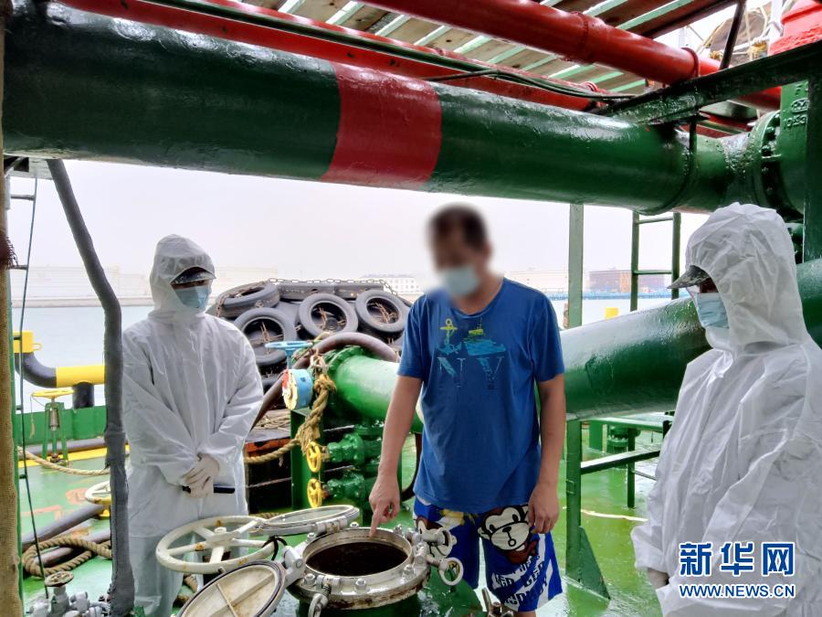 海警执法员在供油母船上抓获的嫌疑人(12月14日摄)。新华社发(敖玉洪 摄)