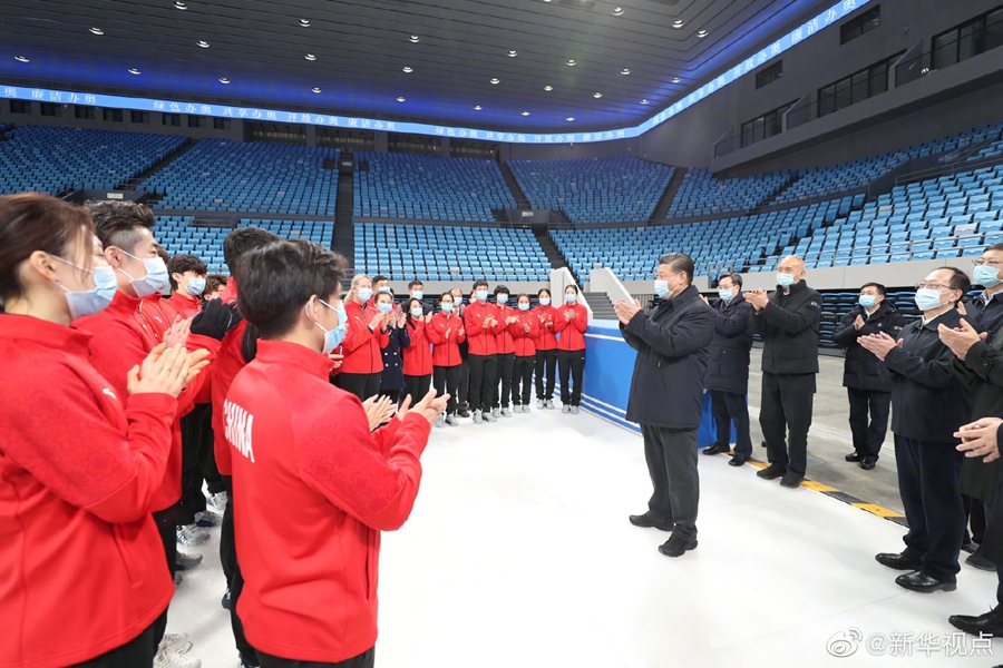 18日下午,习近平总书记来到位于北京市延庆区的国家高山滑雪中心考察调研。在竞技结束区,习近平观看了高山滑雪赛场保障运行和竞技比赛训练情况。习近平指出,体育强国的基础在群众体育。要通过举办北京冬奥会、冬残奥会,把我国冰雪运动特别是雪上运动搞上去,在3亿人中更好推广冰雪运动,推动建设体育强国。临别时,大家齐声高呼:“中国冰雪,加油!”习近平也鼓励大家说:“加油!”(文字记者:张晓松、朱基钗 摄影记者:鞠鹏、王晔、燕雁、岳月伟)