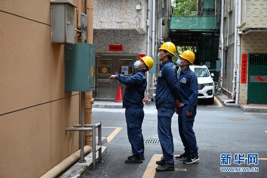 2月12日,深圳龙岗供电局龙城供电分局计量班副班长司红鑫(左)与班组成员在巡视电力设备。新华社记者 王丰 摄