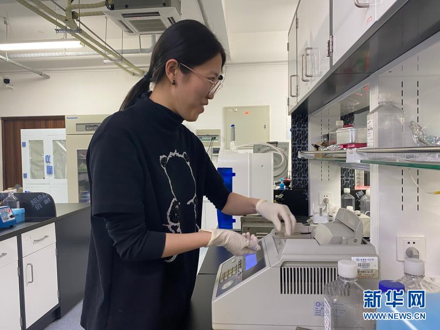 博士三年级学生于领坐在实验台前,正手持移液枪,将灭活病毒、酶、引物依次加入试管,她的研究方向是细菌和噬菌体相互作用的分子机制。