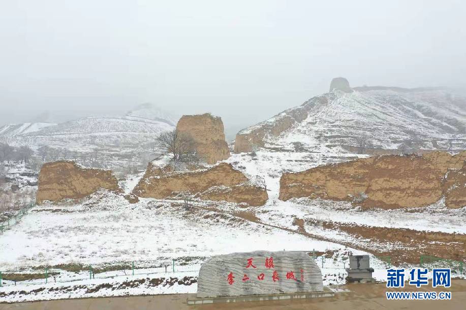 航拍长城雪景。新华网 发(袁建琴、赵文贵 摄)