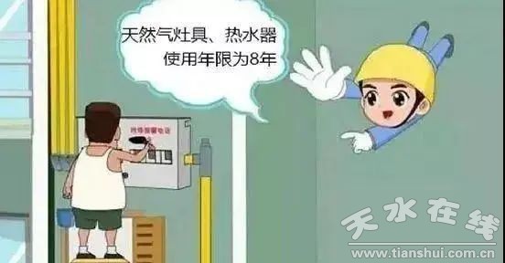 用户应选购带有安全熄火保护装置的燃气灶具。天然气灶具、热水器使用年限为8年。