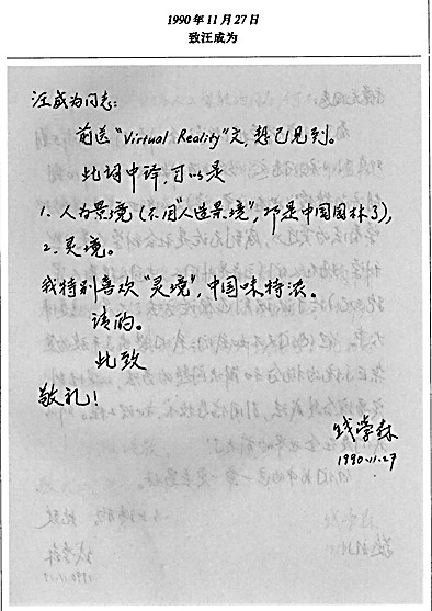 1990年11月27日,钱学森就“灵境”命名致函汪成为。