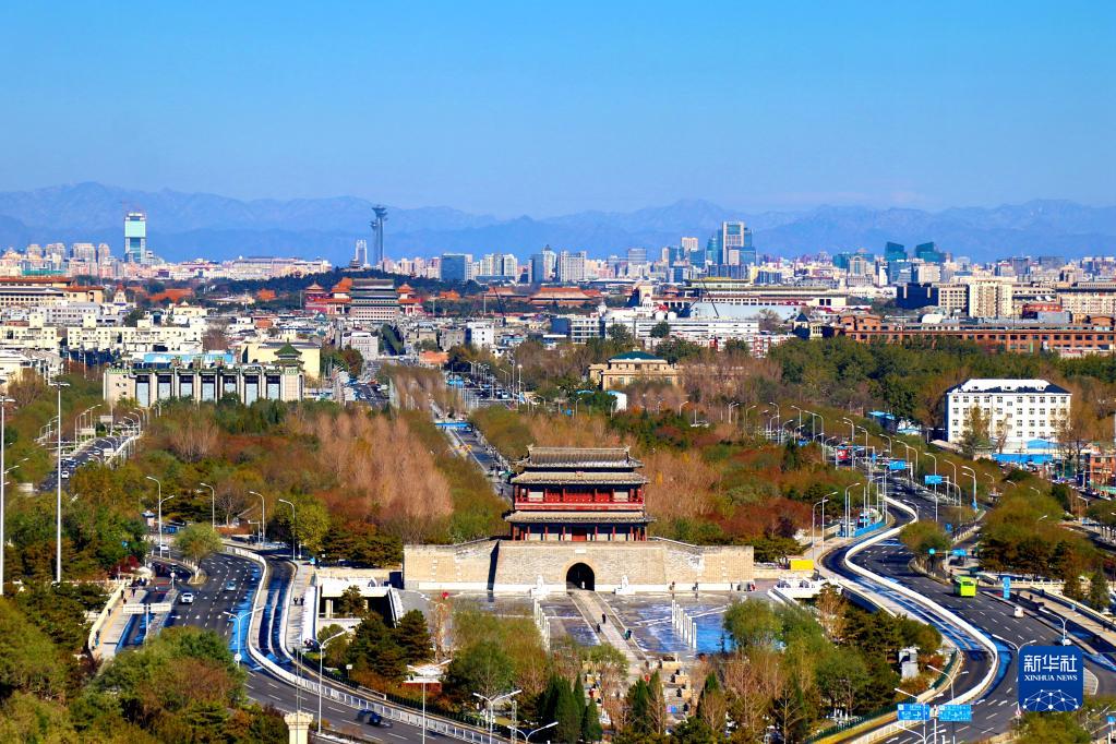 北京永定门城楼及周边景色(11月8日摄)。新华社发(牛云岗 摄)