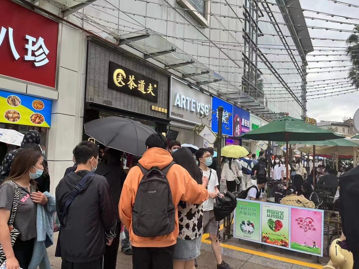 广西南宁市一商场临街商铺外,消费者络绎不绝。(广西壮族自治区商务厅 供图)