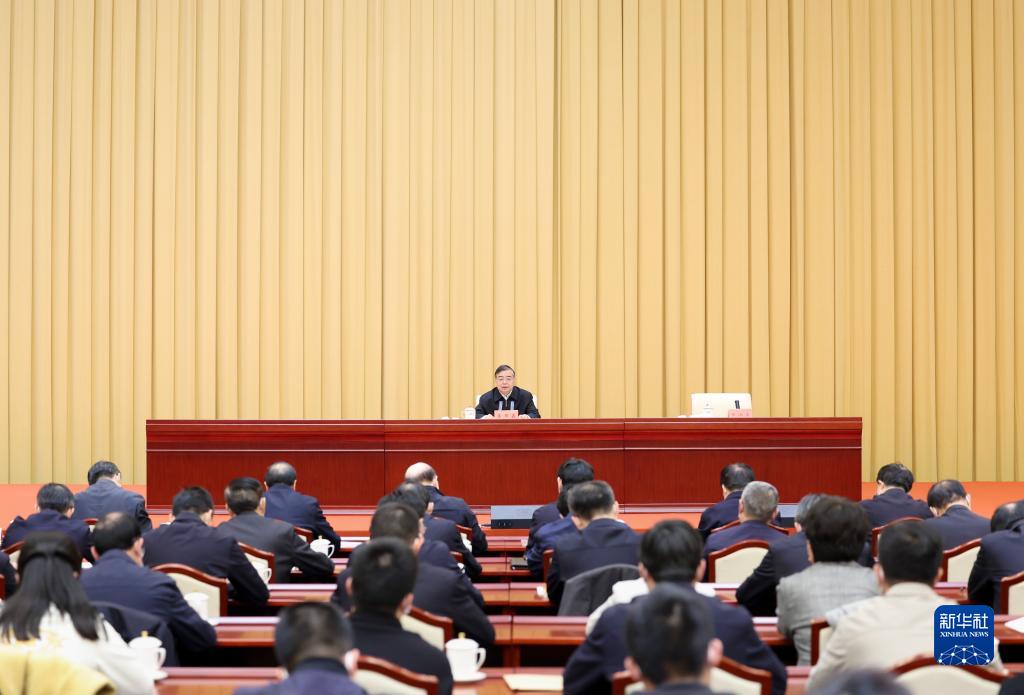 10月31日,中央宣传部、中央和国家机关工委、教育部、中央军委政治工作部、中共北京市委在中国共产党历史展览馆举办学习贯彻党的二十大精神中央宣讲团首场报告会。中央宣讲团成员、中共中央政治局委员、中宣部部长李书磊作报告。新华社记者 丁海涛 摄