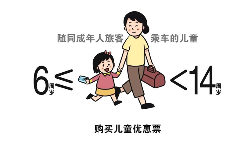 铁路部门还提醒,目前实施的儿童票规定以年龄划分优惠标准,儿童旅客实行实名制管理。随同成年人乘车的儿童,年满6周岁且未满14周岁的应当购买儿童优惠票;年满14周岁,应购买全价票。每一名持票成年旅客可免费携带一名未满6周岁且不单独占用席位的儿童乘车,超过一名时,超过人数应购买儿童优惠票。