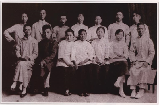 1919年9月16日,邓颖超参与创建的天津进步青年团体觉悟社成立。这是觉悟社部分社员合影。前排右三为邓颖超、右二为刘清扬、右四为张若名。后排右一为周恩来、右五为马骏