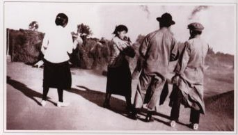 (觉悟社社员在天津八里台村考察,左一为邓颖超)