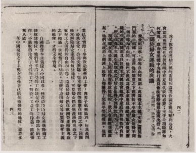(图为大会通过的《关于妇女运动的决议》。决议指出,只有无产阶级获得了政权,妇女才能真正的解放)