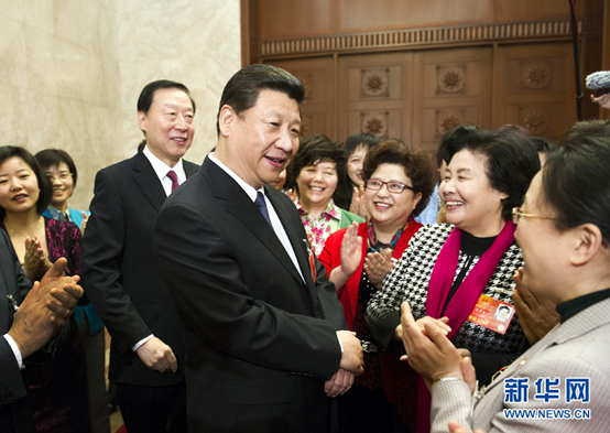 2013年3月8日,习近平同女代表亲切交谈,并代表党中央向参加全国两会的女代表、女委员和全国各族妇女致以节日的祝福。新华社记者 黄敬文 摄
