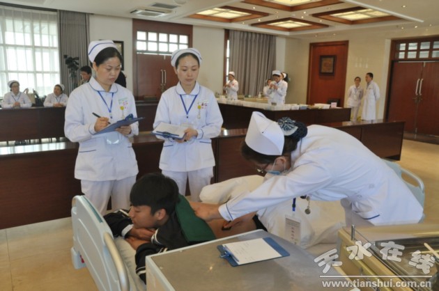 市卫生计生委党委书记、主任蒲朝晖在讲话中指出,举办全市中医护理技能大赛,既是对全市各医疗单位中医护理工作的一次大检阅,又是对开展中医护理工作的一次大推动。技能大赛既注重考核选手中医护理理论水平,又注重考核实际操作能力,这对进一步推广应用中医特色护理技术,提升广大护理人员中医护理服务能力具有极为重要的作用。他要求全市各医疗单位要以这次技能大赛为契机,继续认真贯彻落实国家中医药管理局《关于加强中医护理工作的意见》等文件精神,充分发挥中医护理在提高临床疗效中的重要作用,深入开展优质护理服务示范工程,大力推进中医综合治疗和中医特色护理工作,不断拓展中医护理服务领域,着力提升中医护理服务能力,努力为人民群众提供满意的医疗卫生服务。