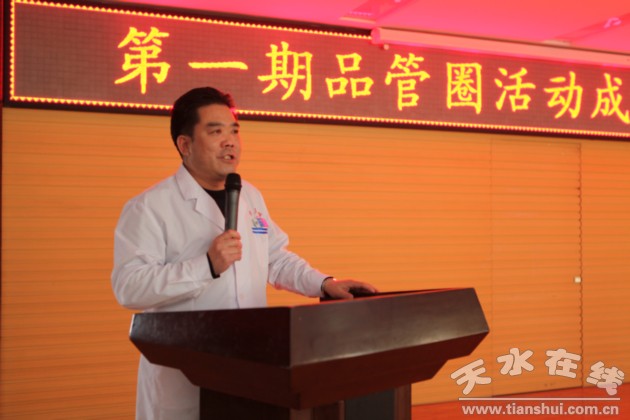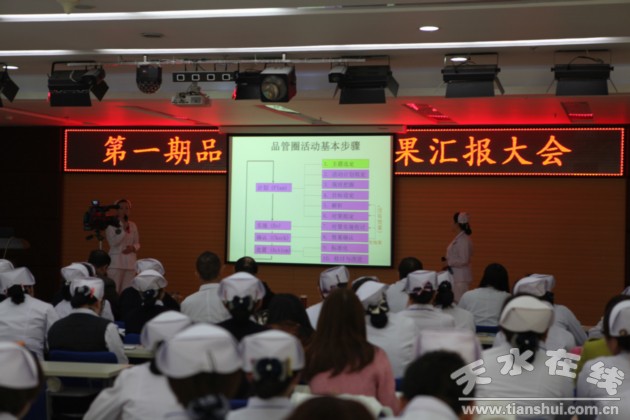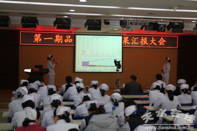 1月7日下午,天水市三院组织召开了第一期品管圈成果汇报大会。本期成果汇报大会由该院品管圈领导小组负责,品管办具体组织实施。院长丁志杰等几位院领导和推进组负责人组成了现场评审专家组,护理、医技、药械等七个品管圈的辅导员、圈长和圈员以及全院职工近200人参加了本次成果汇报大会。