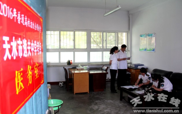 2016年高考即将来临,为切实做好高考期间学校卫生和传染病防控工作,预防突发公共卫生事件的发生,保障广大考生的健康安全,确保高考顺利进行,6月5日,天水市卫生和计划生育综合监督执法局联合市、区两级教育机构对天水市第一中学、天水市逸夫实验中学、天水市第七中学、天水市第九中学等六个高考考点学校进行了抽检。