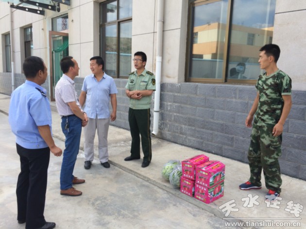 7月29日,在“八一”建军节即将来临之际,清水县人民医院党委专职副书记张知非,副院长李国权、王明明带领相关科室人员,看望慰问了武警清水县中队官兵和清水县消防大队官兵,为广大官兵送去了慰问品,送去了节日的祝福。