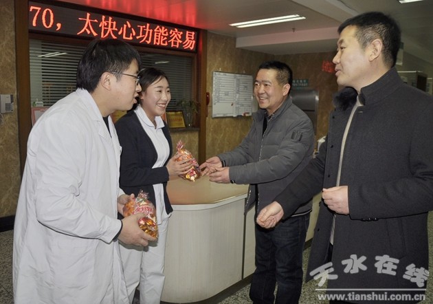 除夕夜晚和正月初一早上,市中医医院班子成员和职能科室负责人一同看望慰问了春节期间坚守在工作岗位的医务工作者和值班人员,向他们致以节日的问候和新春祝福。