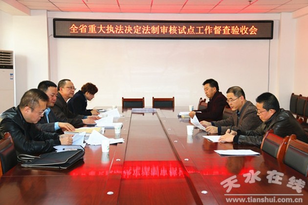 11月3日,由省行政执法监督局局长侯小平带队的全省重大执法决定法制审核工作督查验收小组,对天水市食药监局重大执法决定法制审核试点工作进行了督查验收。