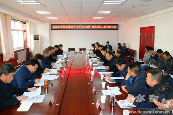 11月7日上午,天水市食品药品监管系统召开学习贯彻党的十九大精神、推进重点工作专题会议。会议由天水市食药监局党组书记、局长陈克孝主持。市、县区食药监局领导班子成员,市局各直属单位主要负责人及市局机关科以上干部参加会议。