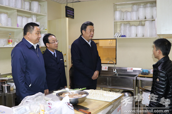 1月15日,天水市食安办主任、市食药监局党组书记、局长陈克孝,市食安办专职副主任唐宇宏带队在秦安县检查指导食品药品安全监管工作。秦安县委常委、宣传部长徐东明,县政府副县长于剑锋及县食药监局负责人陪同检查。