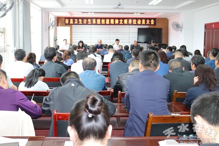 5月4日上午,天水市卫计委召开市直卫生计生系统争创文明单位活动动员大会。市卫计委领导班子成员、县级以上领导干部、市直各医疗卫生单位党政主要领导及机关全体干部职工参加了会议。