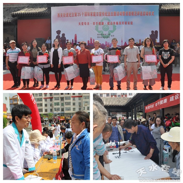 今年的5月15日是第25个国际家庭日,5月13日至17日,天水市围绕“关爱母亲·牵手健康·建设幸福美好新家庭”宣传主题,组织开展了关爱母亲大讲堂、幸福家庭亲子赛、健康有约牵手行等丰富多彩、形式多样、群众喜闻乐见的系列主题宣传活动,受到了群众的欢迎。