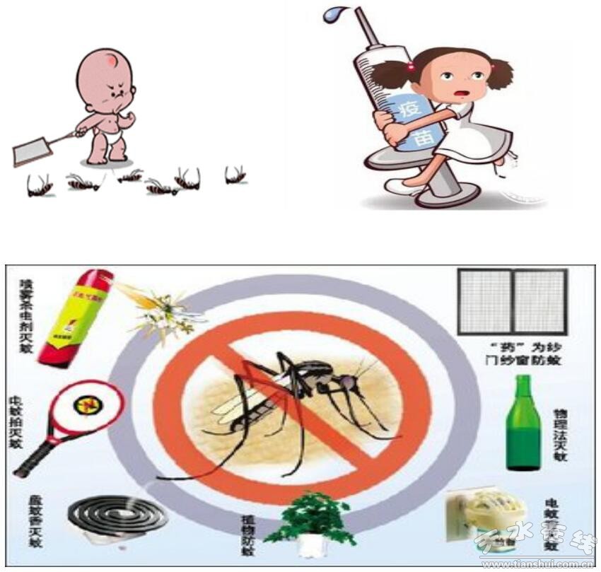 2.灭蚊防蚊:是切断传播途径的重要措施。清扫卫生死角、积水,疏通下水道,喷洒消毒杀虫药水,消除蚊虫孳生地,降低蚊虫密度。农村重点是消灭牲畜棚(特别是猪圈)的蚊虫。夜间睡觉防止蚊虫叮咬可用蚊帐、驱蚊剂等,不提倡露宿。