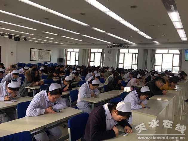 在下午的两场考试中,护理部雷志洁主任全程监考,新形式的“万人万卷”手机答题模式让所有参考人员既紧张又兴奋,大家都集中精力,认真作答,整个考场秩序井然,考风严谨,考纪严明,很好的达到了让护理人员锤炼“三基”,提高专业理论水平的目的。
