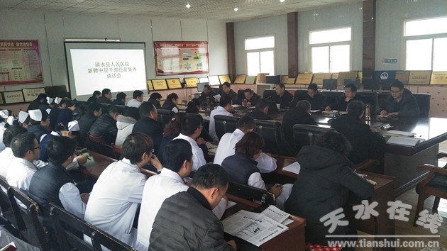 2018年12月27日下午,清水县人民医院开展中层干部任前集体谈话,对新聘任的17名中层干部打好任前“预防针”。院领导班子及全体中层干部参加了会议,县卫计局局长周礼新出席了会议。