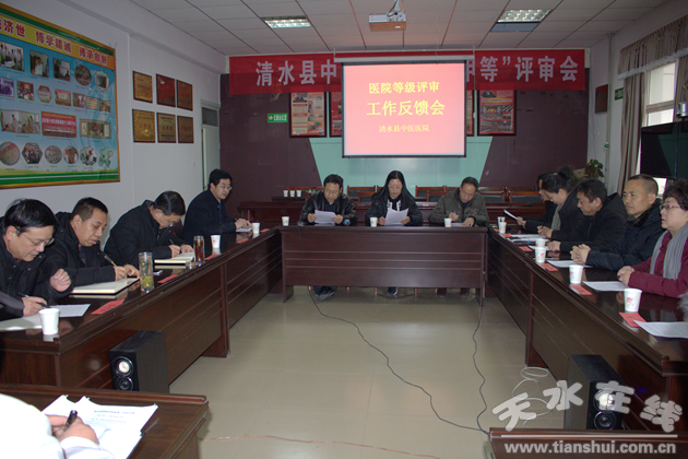 10日上午,市卫计委评审专家组主持召开了“二甲”评审情况反馈会议。清水县副县长张军、清水县卫计局局长周礼新,以及院领导班子成员、全体中层干部和部分业务骨干共40余人参加了反馈会。