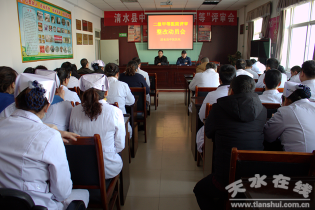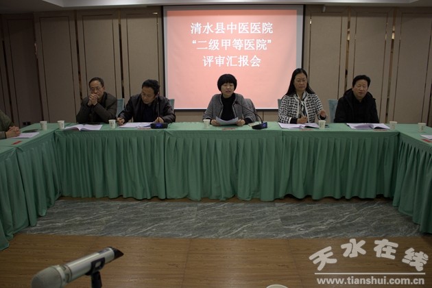8日下午4时,召开了评审工作现场汇报会。参加会议的有清水县副县长张军,清水县卫计局局长周礼新,我院领导班子成员及全体中层干部共30余人参加汇报会。会议由市卫计委中医科科长牛安和主持,首先由牛科长介绍专家组成员,李姝主任介绍了评审工作,专家组具体分工和工作任务,并强调了评审纪律和检查要求。随后清水县中医医院院长蔡贵生代表我院做了二甲中医医院评审工作汇报。随后,清水县卫计局局长周礼新、县政府副县长张军分别做了发言,并就评审工作对中医院做出要求,要求我院以积极、认真、负责的态度,高度重视这次评审,一定要全力配合好专家的各项评审工作。最后,李主任对专家组进行了分组。