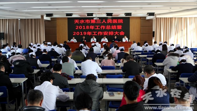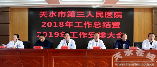 1月18日,天水市第三人民医院召开了2018年工作总结暨2019年工作安排大会,院长丁志杰出席会议并讲话,院党委书记杨国宏主持会议,全院干部职工210多人参加了会议。