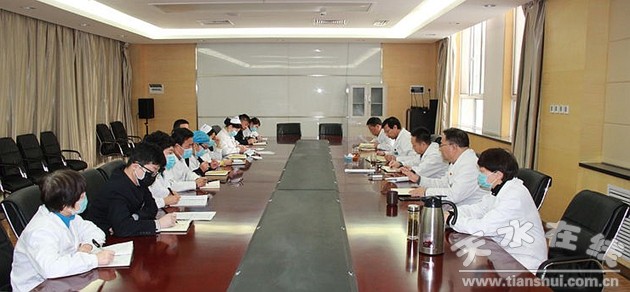 全院上下众志成城,全力以赴投入到疫情防控阻击战当中。作为天水市疫情防控后备医院,该院第一时间成立防控领导小组,制定医疗救治应急预案,组建医疗救治、疫情报告、流行病调查、院感防控、预检分诊、物资保障、宣传监督等工作小组,进一步靠实防控责任,确保各项防控工作扎实有效;防控领导小组每日召开工作推进调度会议,安排部署,保证各项措施得到有效落实。