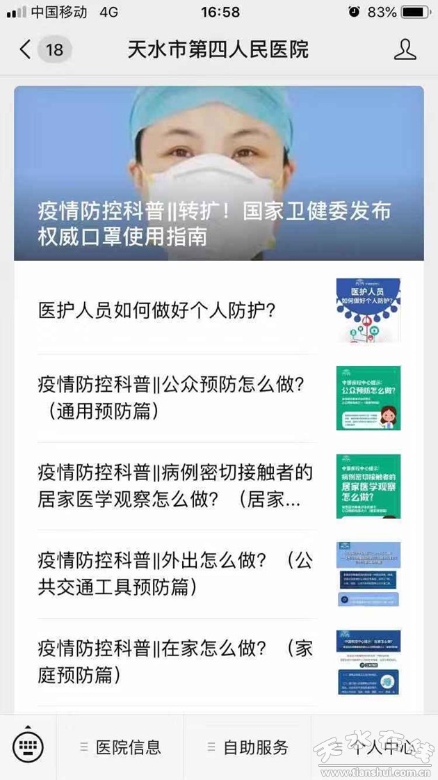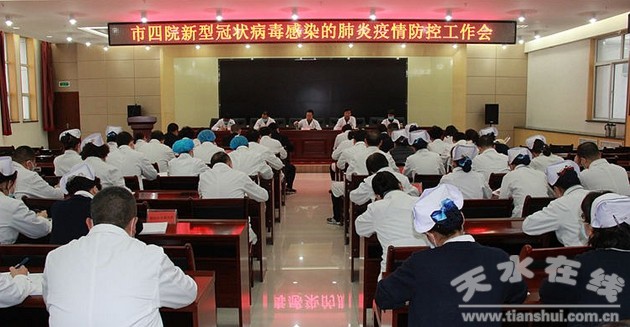 新春伊始,一场突如其来的新型冠状病毒感染的肺炎疫情肆虐神州大地,自疫情发生以来,天水市第四人民医院党委领导班子坚决执行市委、市政府的决策部署,在市卫生健康委的正确指导下,进一步统一思想,提高认识,将疫情防控救治作为当前重大政治任务,坚定不移贯彻落实习近平总书记对防控新型冠状病毒感染的肺炎疫情做出的重要指示,全面贯彻坚定信心、同舟共济、科学防治、精准施策的要求,以务实的作风、科学的精神、过硬的措施,全力做好各项防控救治工作,奋力投身到这场没有硝烟的疫情防控阻击战当中。