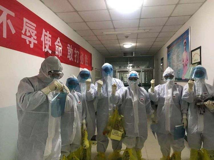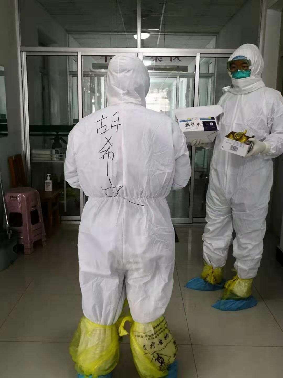 2月2日早晨7点,胡希文医师来到医生办公室,首先查看昨晚患者的病情记录、用药情况、各项辅助检查结果,默记于心;紧接着7:30分在护士的监督和仔细检查下一层一层地穿好防护服,全副武装进入病区开始查房,一个一个地询问患者的病情……他们在紧张、密闭的环境中,不到十分钟就大汗淋漓,如何坚守5-6个小时,克服不能喝水、不能上厕所,还要不停地来回走动,给患者实施治疗等一系列操作?他写到:“汗水、饥渴、劳累,侵袭着每个人的躯体,承受着体力和精神的双重压力,但我们还是选择默默坚守。”坚定、从容、勇敢,彰显着他们不惧艰险、勇往直前的大无畏精神,正是这种精神,传递给患者的是一份战胜病魔信心和力量。