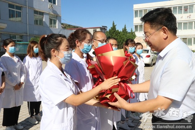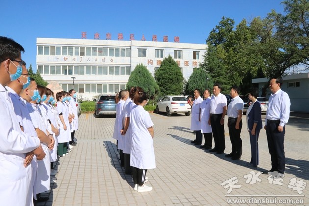 8月19日,天水市委常委、宣传部部长张建杰带领市卫生健康委党组书记、主任陈克孝、副主任李姝、市计生协秘书长杨智才等同志,深入市五院看望慰问奋战在一线的医务人员,并代表市委、市政府向市五院全体医务工作者致以节日问候和崇高敬意。