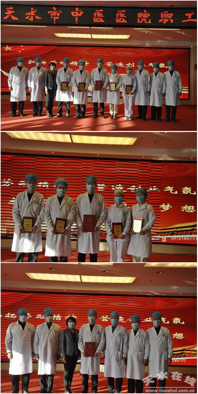 大会在雄壮的国歌声中拉开了帷幕。市计划生育协会副会长谢辉,医院党委书记王志刚,党委副书记、院长曹宝国,副院长李晓峰分别为荣获甘肃省卫生健康行业骨干人才的马小军、陈晓刚,荣获甘肃省卫生健康行业优秀青年人才的董丽、胡东霞颁发了荣誉证书。荣获全省先进工作者荣誉称号的曹宝国院长分享了获奖感言,勉励大家要增强忧患意识,勇于应对挑战,善于抓住机遇,进一步解放思想,与时俱进,并用劳动模范的崇高精神和高尚品格鞭策自己,继续焕发劳动热情,恪守职业道德,珍惜荣誉、保持本色,谦虚谨慎、戒骄戒躁,发挥好示范带头作用。