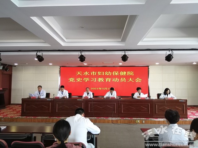 3月27日上午,天水市妇幼保健院党委召开党史学习教育动员大会,深入学习贯彻习近平总书记在党史学习教育动员大会的重要讲话精神,传达中央、省市委和市直卫健系统党史学习教育动员大会部署要求,宣读我院党史学习教育实施方案,对医院开展党史学习教育做动员部署。院领导班子成员、党支部书记、中层干部、全体党员100余人参加了会议。党委委员、纪委书记马小平同志主持会议,党委书记王国强同志作动员讲话,对医院开展党史学习教育进行安排部署。