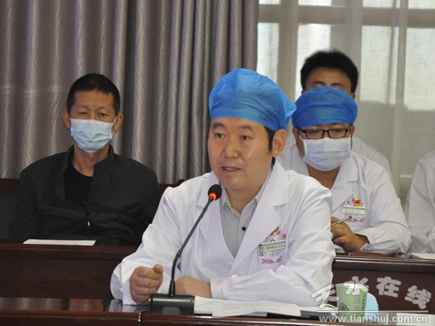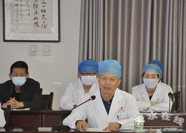 最后,曹宝国诚挚感谢专家组一行的辛苦付出和悉心指导,并代表全院职工郑重表态,在接下来的工作中,医院将认真梳理专家反馈的问题,立即制定整改方案,明确责任,即知即改,确保巡查组提出的问题尽快整改到位。并表示将以这次巡查工作为新的起点,进一步加强医院党建工作,坚持正确办院方向,重视医院内涵建设,加快基础设施建设,发挥好中医药特色优势,着力解决医院管理和医疗服务中存在的问题,与全院干部职工一起齐心协力,把天水市中医医院建设成为政府放心、社会满意、群众信任的中医药区域服务中心!