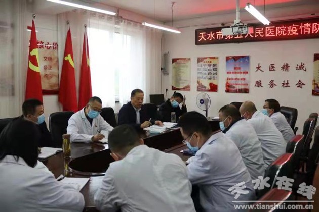 根据近期疫情形势,为进一步增强防控意识,提升防控能力,对疫情防控工作进行再动员、再部署、再落实。10月19日下午,天水市第五人民医院召开了疫情防控专题会议,通报当前疫情防控形势,统一思想、明确任务,对疫情防控工作进行全方位部署。会议由院党总支书记、院长潘临平同志主持,院领导班子成员、科级干部及负责人、新冠肺炎医疗救治小组成员和院感队伍人员参加了会议。
