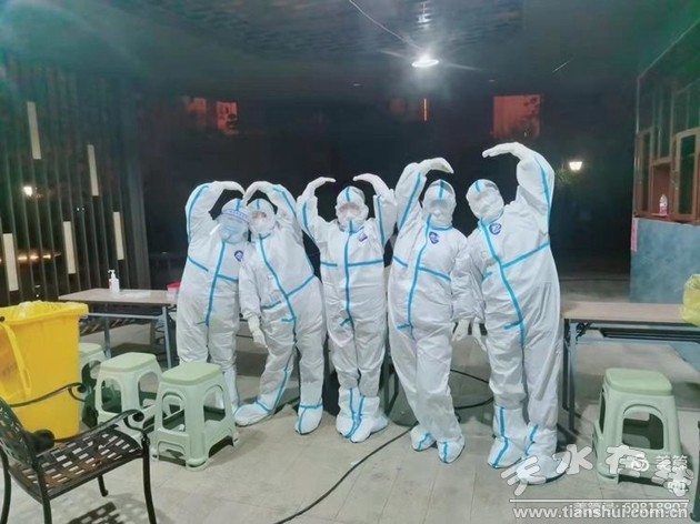 紧张而有序的核酸采样工作虽然告一段落,但我的内心仍然久久不能平静。病毒无情人有情。在这里,我见到了最美的逆行者;在这里,我明白了哪有什么岁月静好,只是有人替你负重前行。谁说少年不担当,少年自有少年狂。正是这些少年,践行着我们中医人和年轻一代的使命。我们坚信,乌云不可遮日,疫情不可挡春。黑暗有多么让人咬牙切齿,光明就有多么让人热泪盈眶。纵然千钧压顶,也要保持微笑。正如约翰肖尔斯所说:“没有不可治愈的伤痛,没有不可结束的沉沦,所有失去的,会以另外一种方式归来。”疫情当前,中医院青年当冲锋在前,共克时艰,责无旁贷!待到春花烂漫时,让我们再把酒言欢。最后,让我们为这个强大的团队加油!为天水人民早日战胜疫情加油!