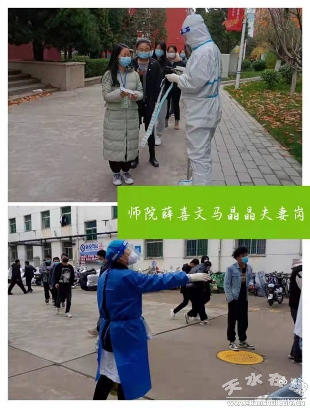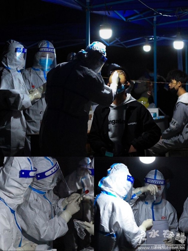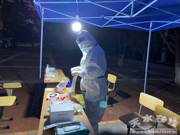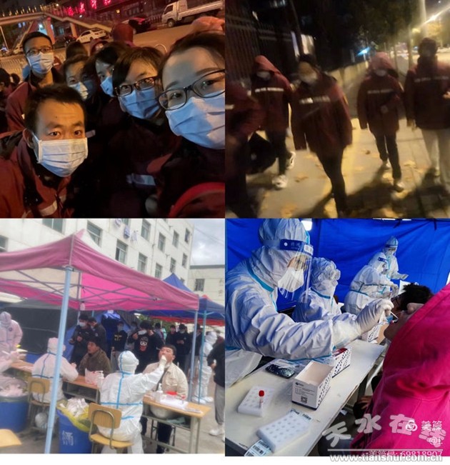 2021年的金秋季节,本该是阖家团圆、出行旅游,踏青山、赏红叶、打卡黄金大道的时节,然而新冠病毒的来袭打破了这里的一切和宁静。11月3日凌晨五点,在医院派出的2支采样队连续2日奋战后,我们接到了去天水师范学院采样点开展核酸采样工作的通知。整个师院需采样人数约1.8万人,设置采样点19个。由于各采样点比较分散,人数相差较大,给分组和调度带来一定难度,而我们这个团队中大多都是80后、90后的女孩,这个年纪也正是她们爱哭、爱笑、爱闹的年纪。起初我还担心大家相互都不太熟悉,工作开展可能比较困难,没想到在经过短暂的忙乱后,每个人迅速进入到紧张而有序的工作中,相互配合默契,动作标准,速度又快,圆满完成了每天的工作任务。