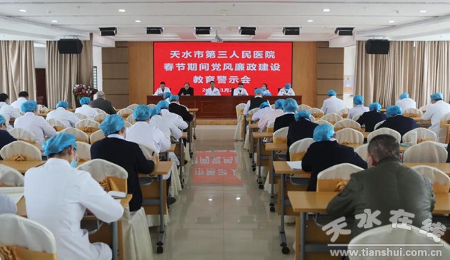 春节将至,为深入贯彻落实中央八项规定精神,持之以恒正风肃纪,营造风清气正节日氛围,1月28日下午,天水市第三人民医院召开党风廉政建设警示教育大会。医院党政领导班子成员、各科室主任、各病区护士长、科秘书共计70余人参加会议。会议由党委书记丁志杰主持。