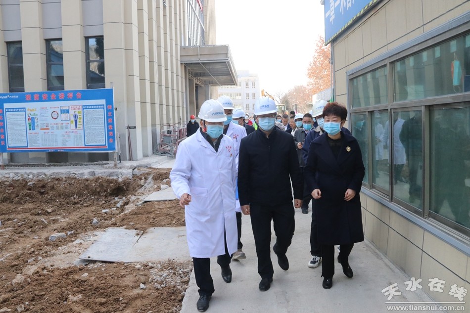 3月4日,市委常委、常务副市长贾义翔,副市长汪小娟,市政协副主席范多智带领市发展改革委、市财政局、市自然资源局、市住建局、市卫生健康委、经开区管委会等相关部门,以及麦积区委主要负责人,就天水市第五人民医院改扩建项目建设情况进行调研。市五院党总支书记、院长潘临平陪同调研。