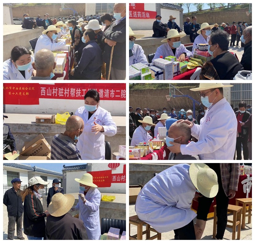 为巩固和拓展党史学习教育成果,助力乡村振兴战略,给群众送去健康和温暖。5月7日,天水市第二人民医院耳鼻咽喉科牵头组织疼痛科、普外科一病区、骨伤科一病区、心血管内科一病区及南院区风湿病科的党员干部和专家团队走进琥珀镇西山村,联合镇卫生院开展“联合义诊走基层、服务百姓送健康”大型送医送药义诊服务活动。